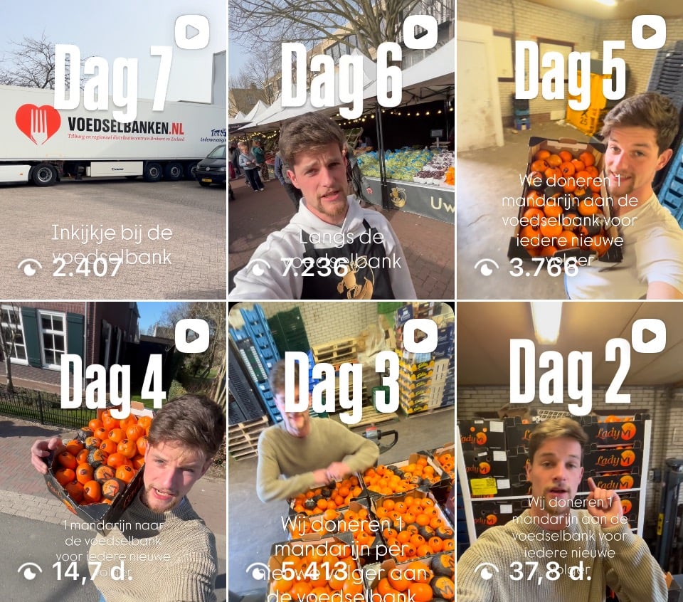 Wij doneren een maand lang 1 mandarijn aan de voedselbank voor iedere nieuwe volger! Afgelopen week hebben we de eerste lading van 620 mandarijnen langsgebracht. Maar dit worden er meer... Wordt jij onderdeel van dit avontuur?
